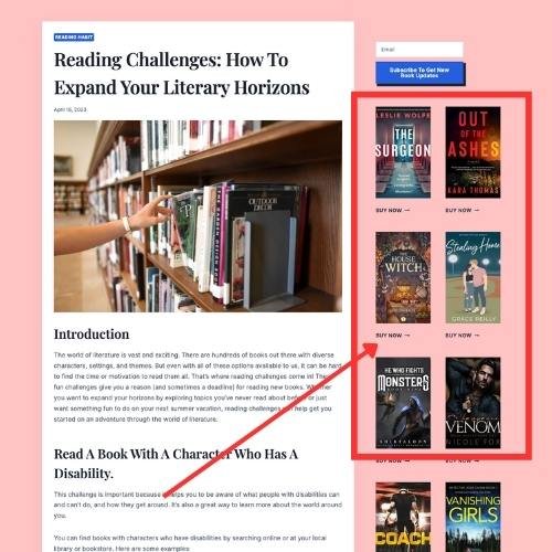 As they explore our blog, your book will be prominently displayed in the sidebar, capturing the attention of this highly engaged audience. This strategic positioning allows you to tap into a captive readership that is more likely to purchase your book, based on their interest in our blog content.